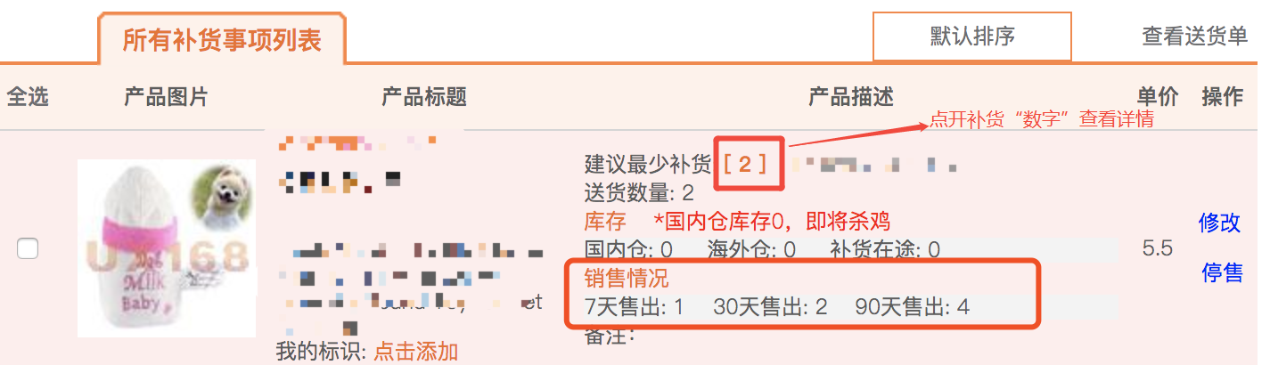 (3)、低销量零库存:产品暂时销量不是很高,但可供货库存已为0,如果不及时补货,一旦有买家下单,则会直接造成断货;