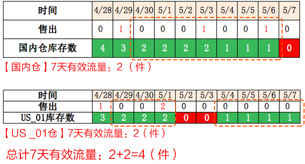 有效天流量:有库存可以卖的(即不算断货时期)累计天数的销量。