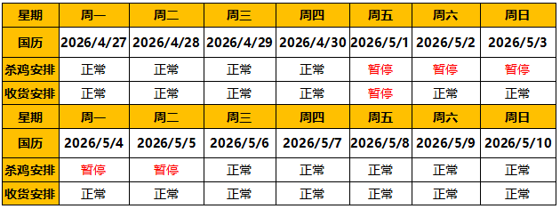 2026年平台五一假期即将到来,为方便供应商提前安排补货等相关事宜,现将平台工作安排告知如下,请各供应商匹配自己的实际情况作必要的行动准备: